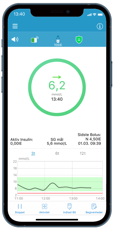 • Oplev større frihed og diskretion ved bolus afgivelse fra app installeret på egen smartphone