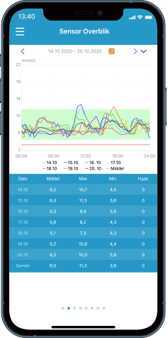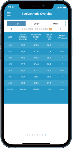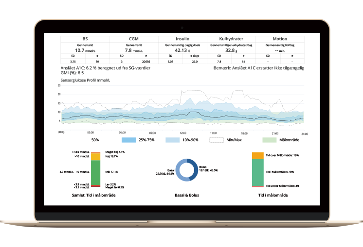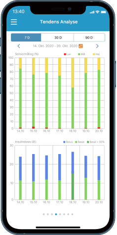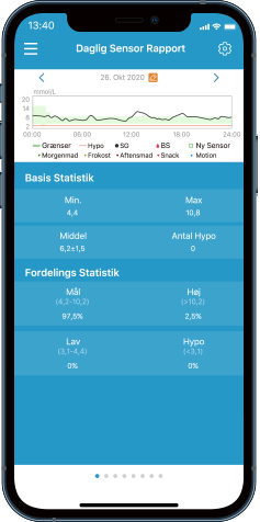 Brugervenlige grafer der visualiserer og analyserer dine glukose værdier, insulintilførsler, kulhydrat og andre begivenheder.