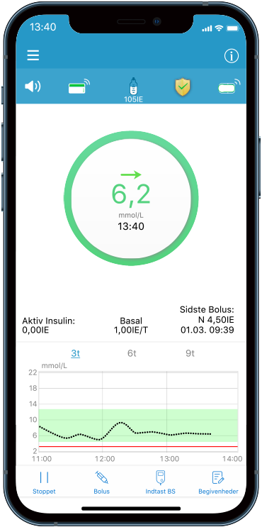 Hvis du er på vej mod et lavt blodsukker, vil Auto Tilstand give dig mindre insulin for at forhindre, at dit blodsukker bliver lavt.